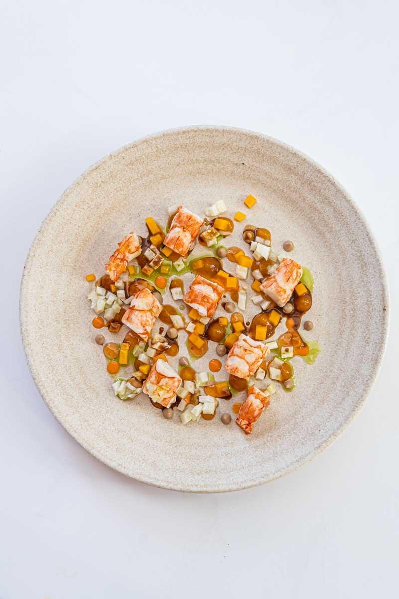 Le blanc confit, risotto de pomme de terre, les ailes en civet et bisque de homard